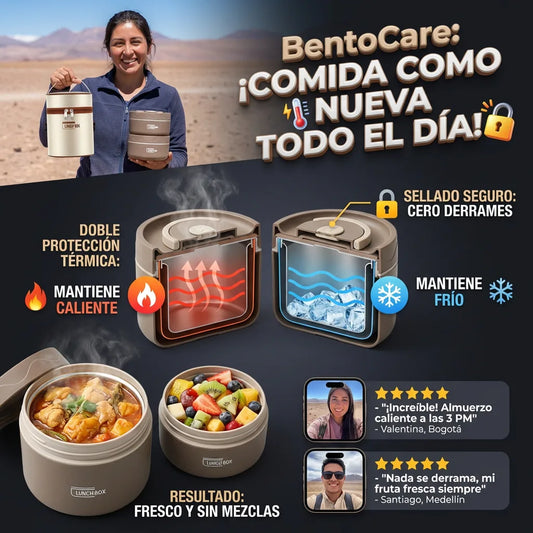 BentoCare - Conserva la comida caliente o fría con sellado seguro ideal para el colegio o la oficina.