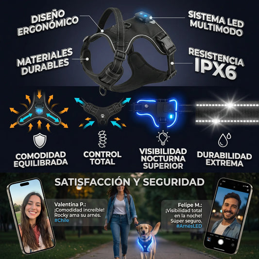 Arnés Ergonómico Guardian LED - Seguridad y visibilidad para paseos sin riesgos
